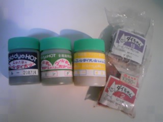 今日は何色を染めて、染まる色の濃さをよく見て、乾かして。